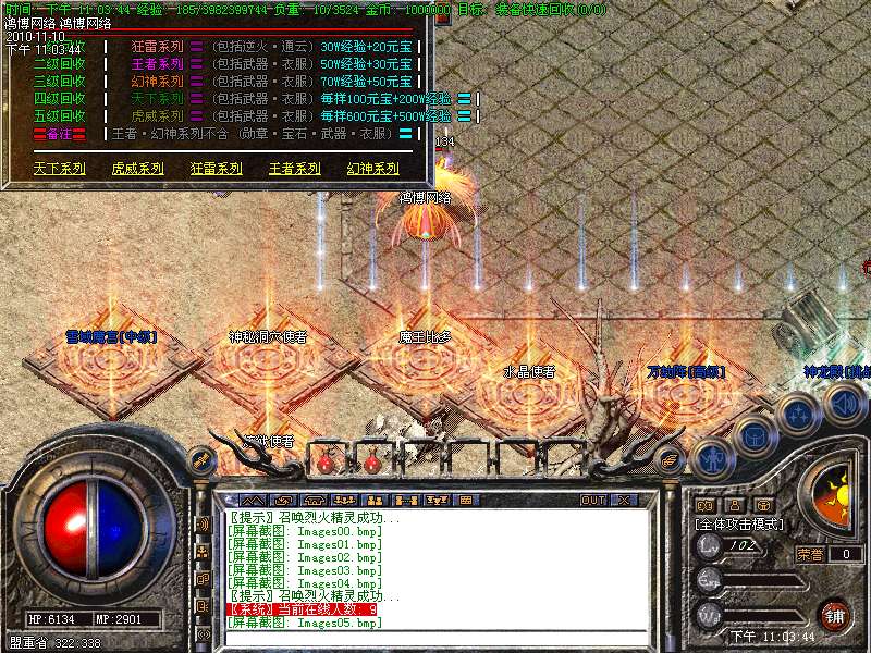 新手提示:新手初级去初级打宝地图.终极神殿恶魔之妖爆4000元宝.新人必争之地.