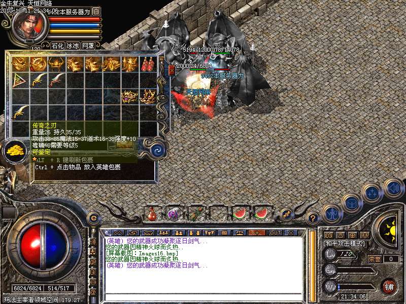 2.打装备-----最新地图金牛套装、炎龙套装、荣耀套装、暴率爽歪歪。