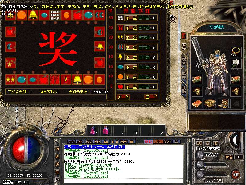 [251]:游戏爆率已大幅度提高,小BOSS都将会爆出战神装备。包括开天,强化!大BOSS更有几率爆出致命石,伤害石。元素可在封魔皇宫自行添加!