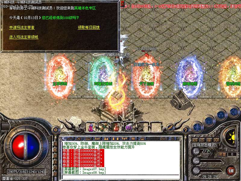 3.特色主宰领域系统:玩家到100级可以到土申请玛法主宰者,可获得独特封号、七彩名字、每天奖励、个人领域地图!