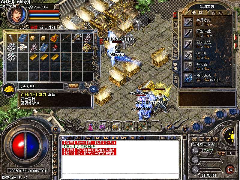 [255,249]人物和英雄上线既送所有内功和连击,英雄的技能点[领取英雄]的领取个职业基本就可自动学会所有技能!