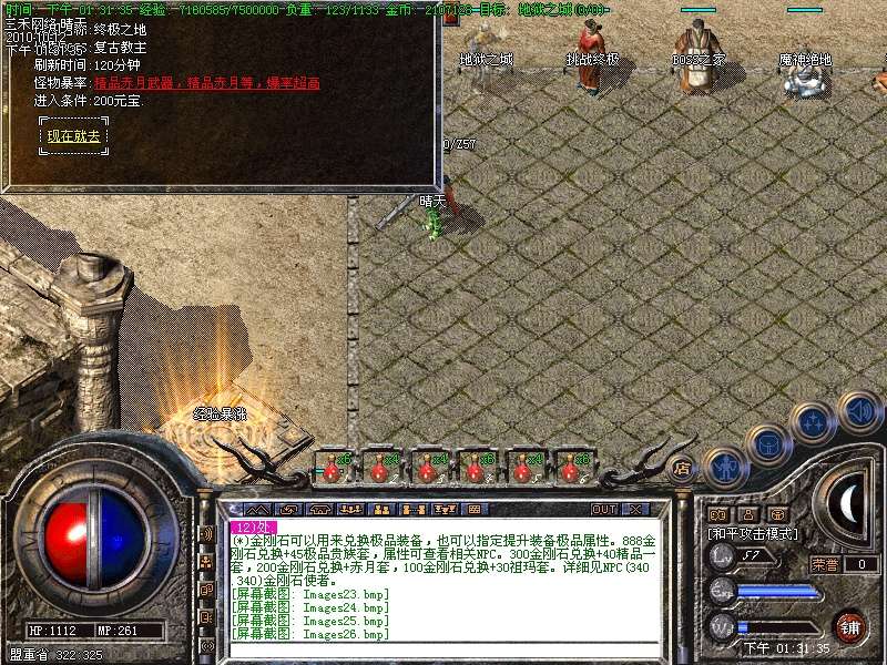 〖版本介绍五〗:增加各种新颖地图.保留古老的玩法,又增加了更多好功能:装备淬炼.在线回收保持了玩家PK的激情的同时又让玩家体验到古老是PK快感!