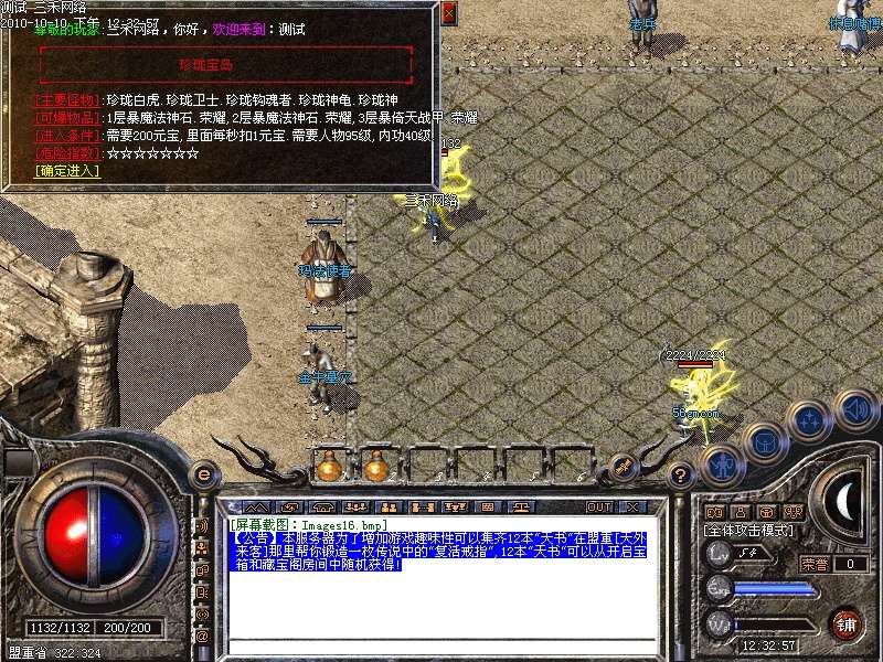 〖版本特色一〗:为防止 打元宝的地方:“元宝之地”被包场,有人打不到元宝 而放弃本服, 本公司特别开发“元宝房间”系统,人人平等打元宝,不用再怕别人抢你的元宝了!房间总共设20个,每次进入允许打怪5分钟,5分钟后系统将你传出,让下一批等待打元宝的玩家进入,这样就能人人打到元宝,如果房间人数已满你必须要等待进入,因为每个人只有在里面5分钟的时间,出来后要再次排队再进入,如果房间人数不满,您当然不需要排队而直接进入!
